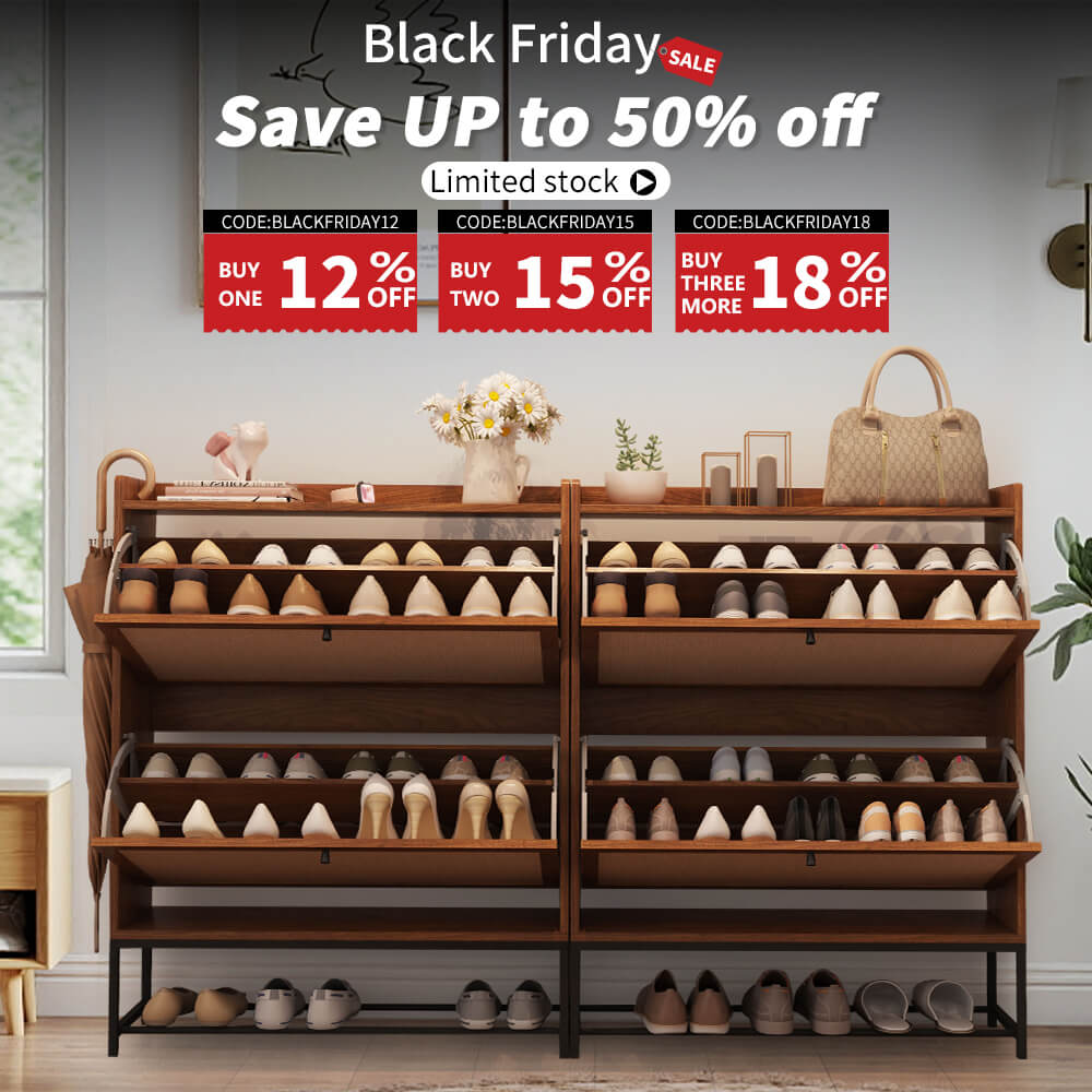 I purchased this shoe storage for my front foyer area. The size is perfect and it is lovely to look at. My husband had it assembled in no time. It fits most shoes but wonโt fit large boots or sneakers. It serves its purpose my shoes and kids too. Fits a good amount inside. Love this cabinet.