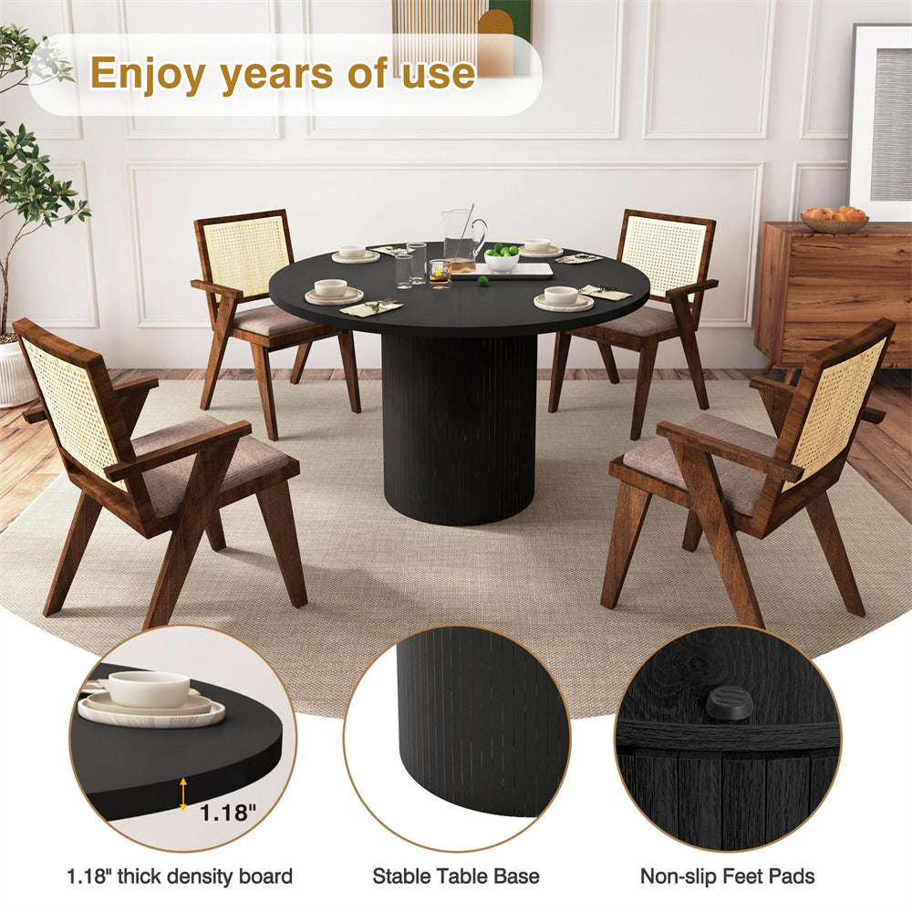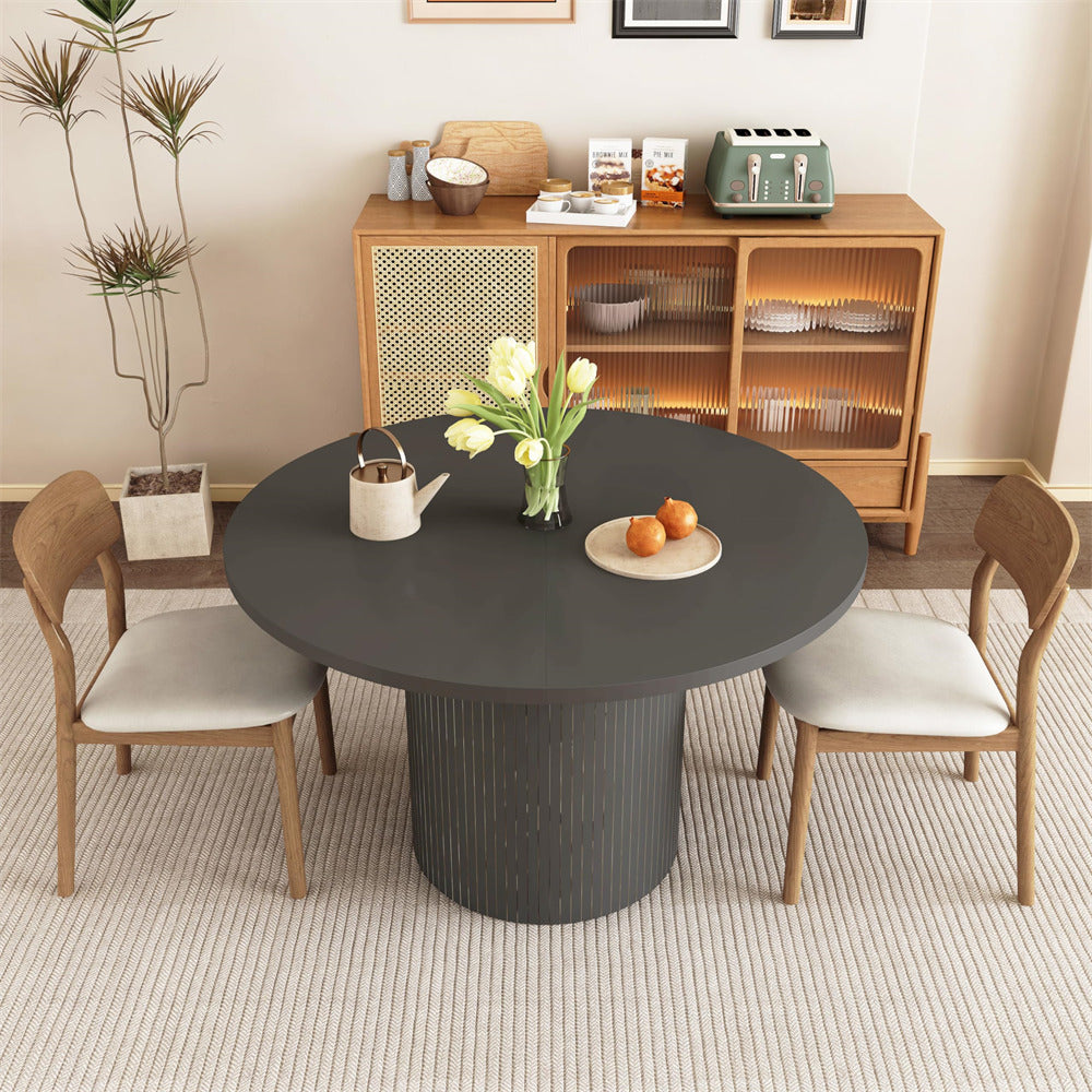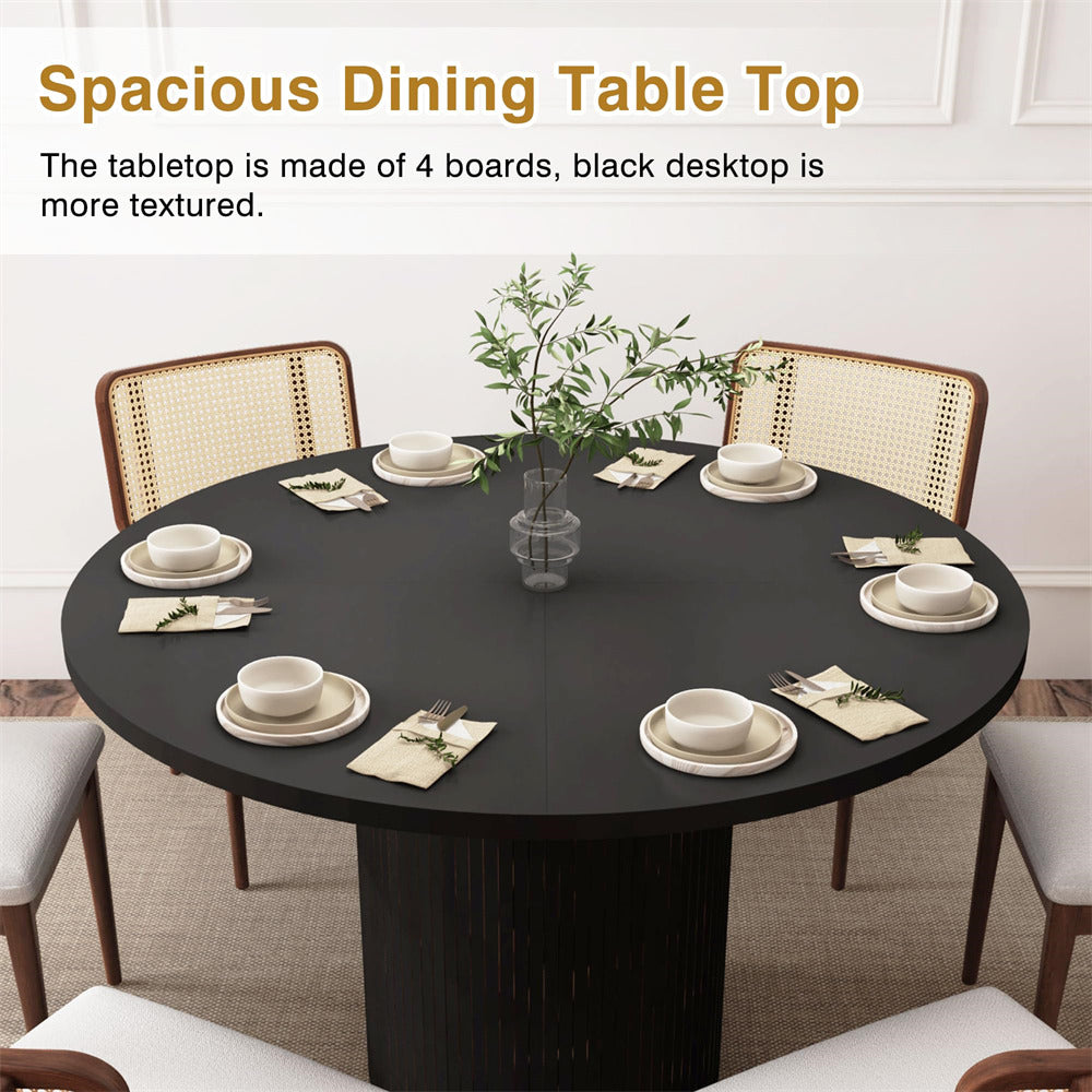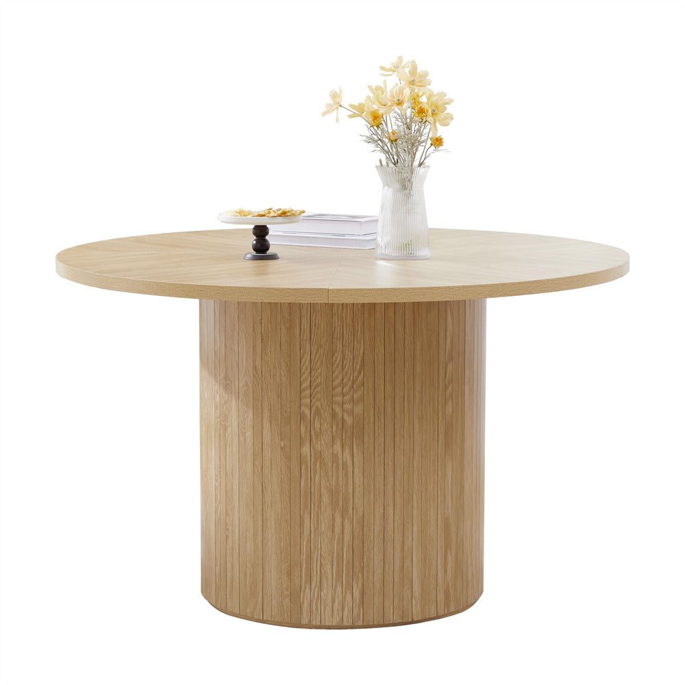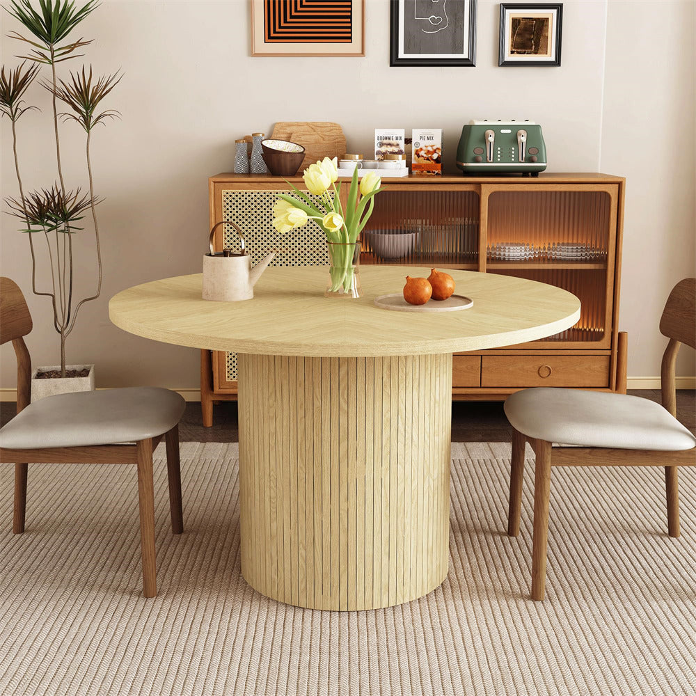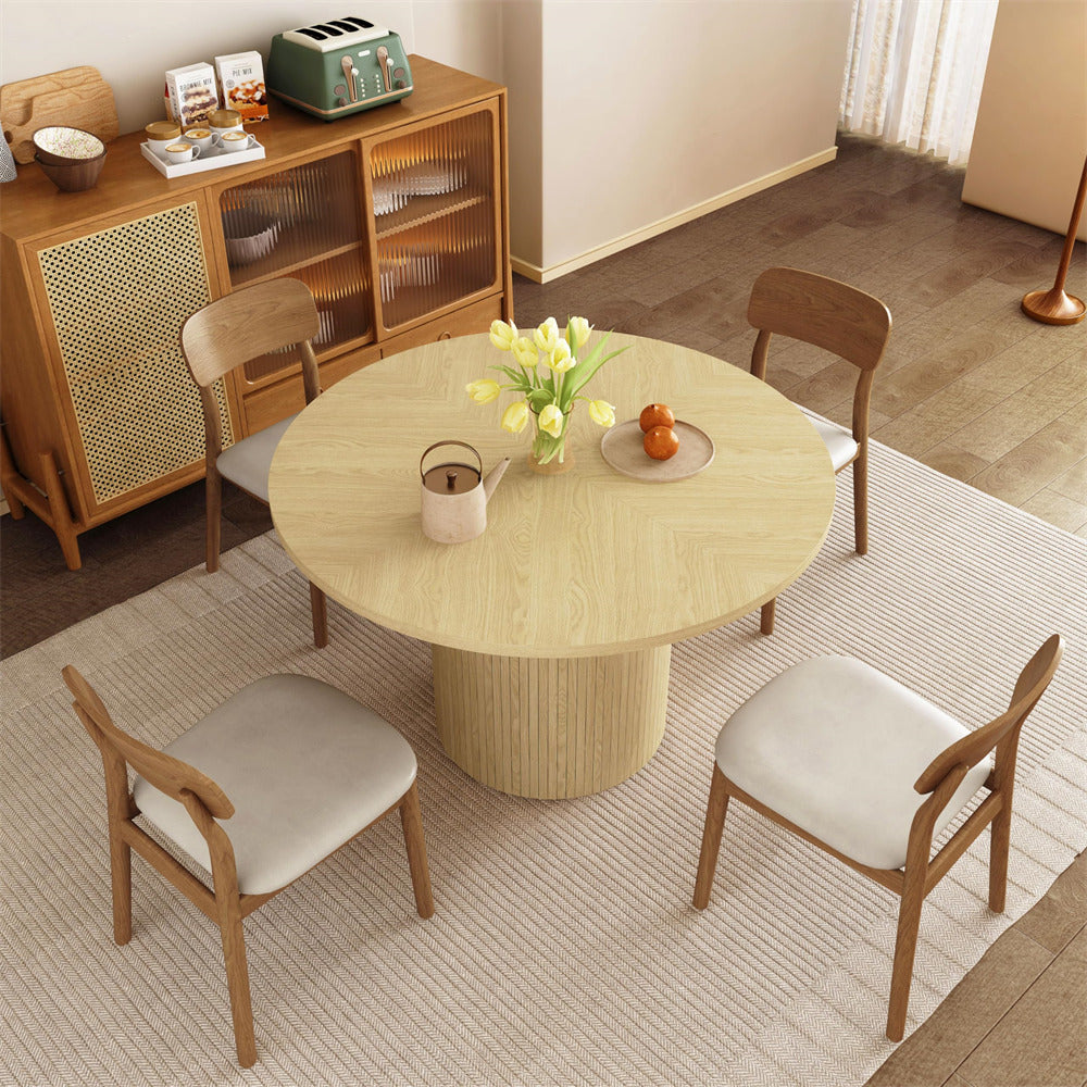 Modern Round Dining Table for 4 Farmhouse Small Circle Kitchen Table with Wood Strip Base