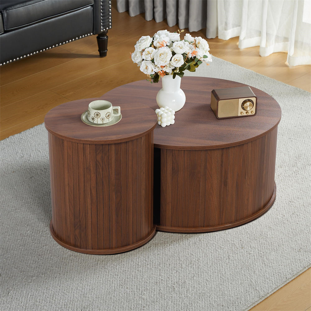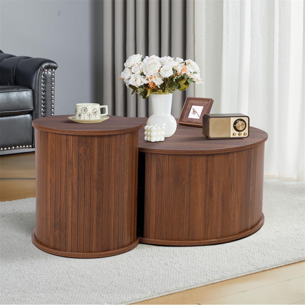 Nesting Coffee Table Set of 2 Circle Side Table Wooden Coffee Table