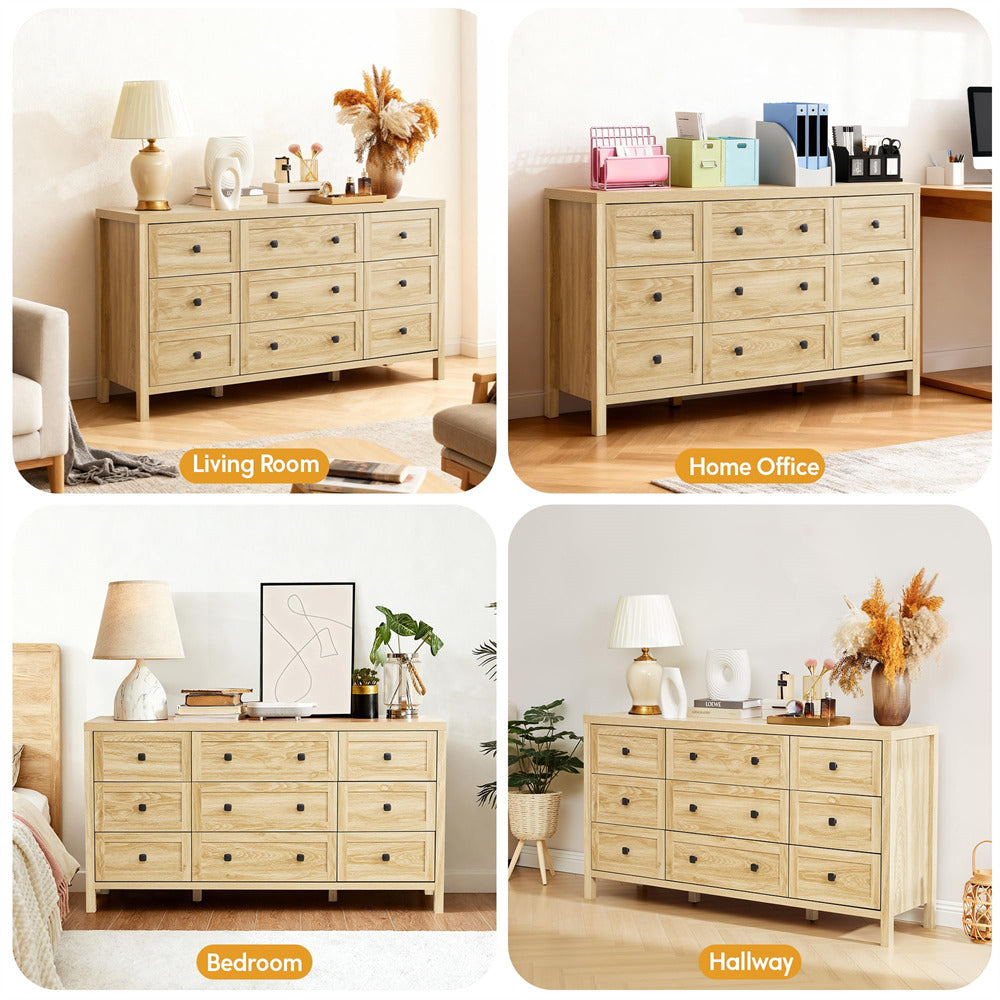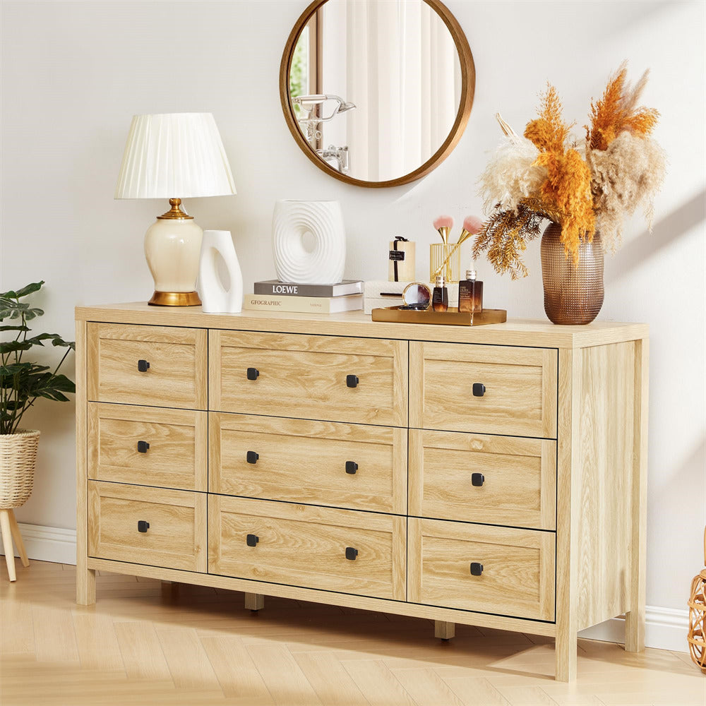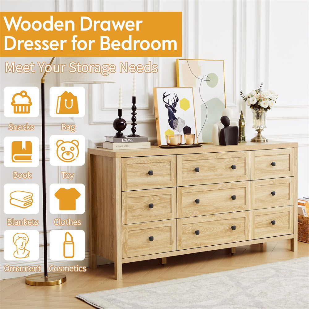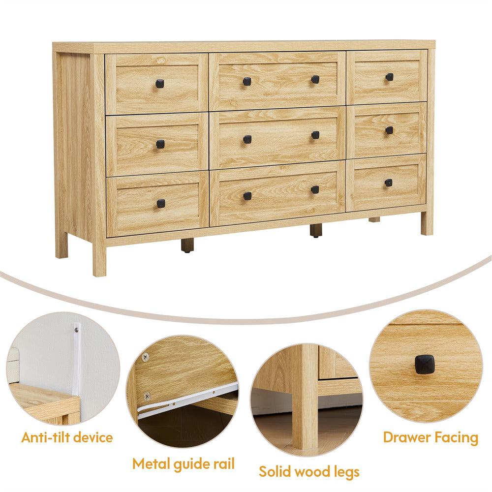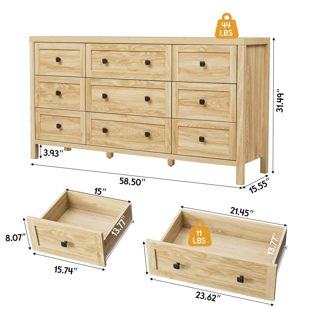 58.5" Wide Wood 9 Drawer Dresser with Splicing Finish and Metal Handle