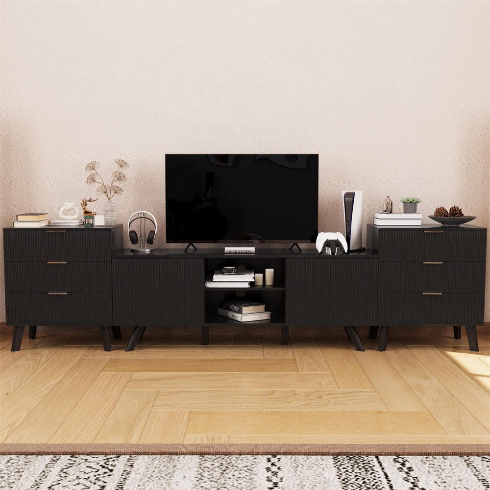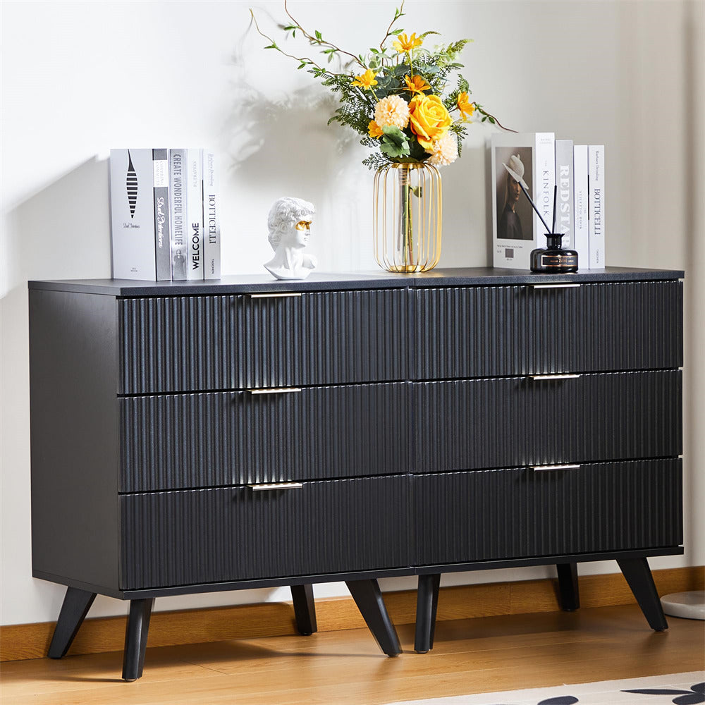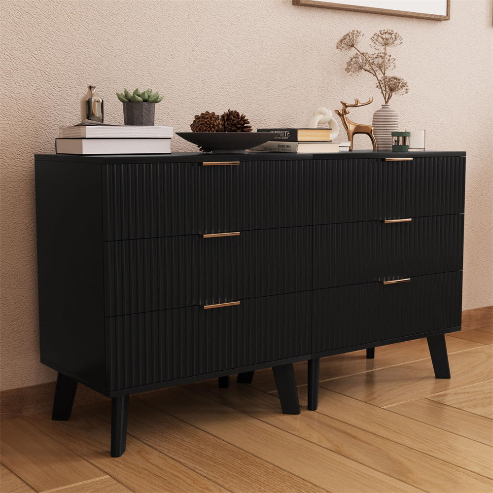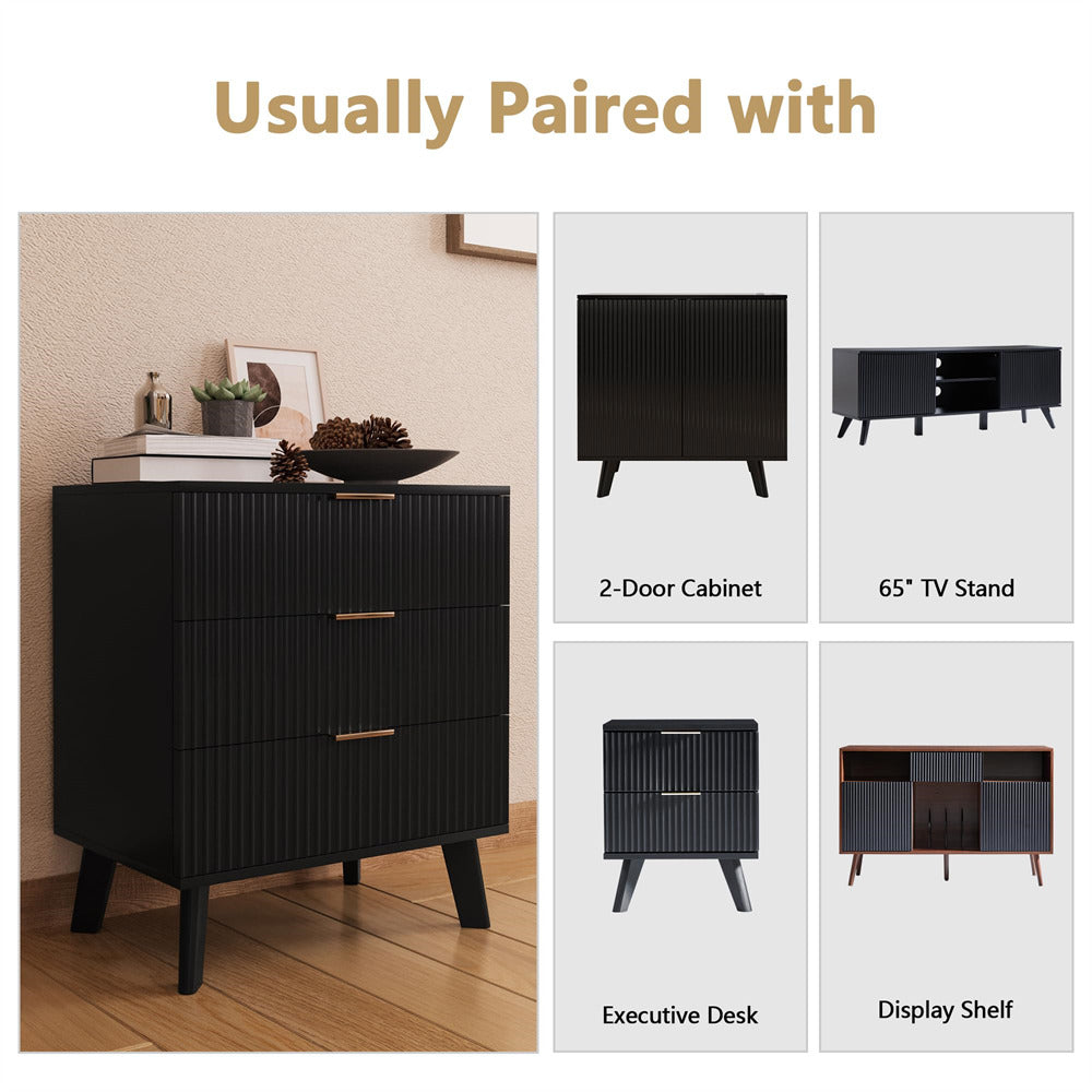 - Wood 3 drawers dressers comes with a fluted waveform panel design, with sleek curved profile design is unique and elegant.