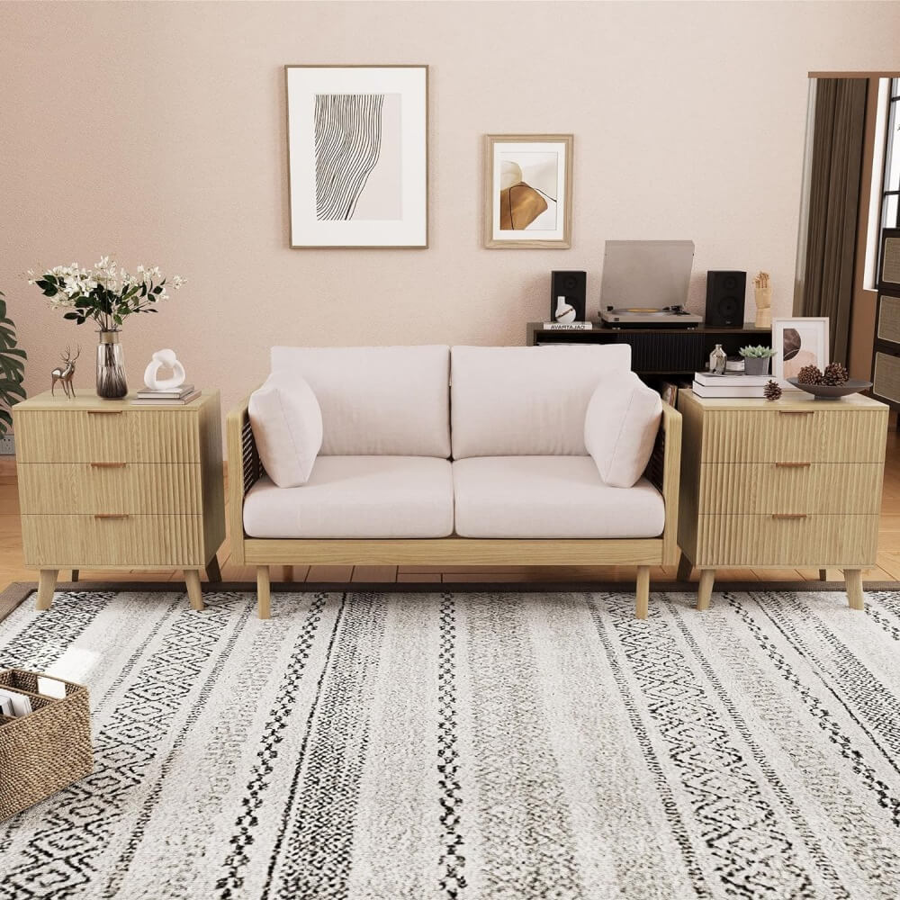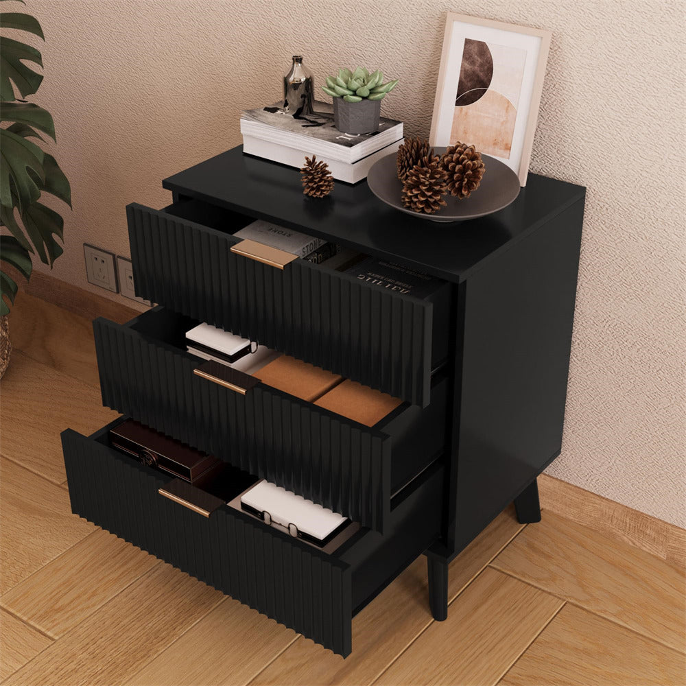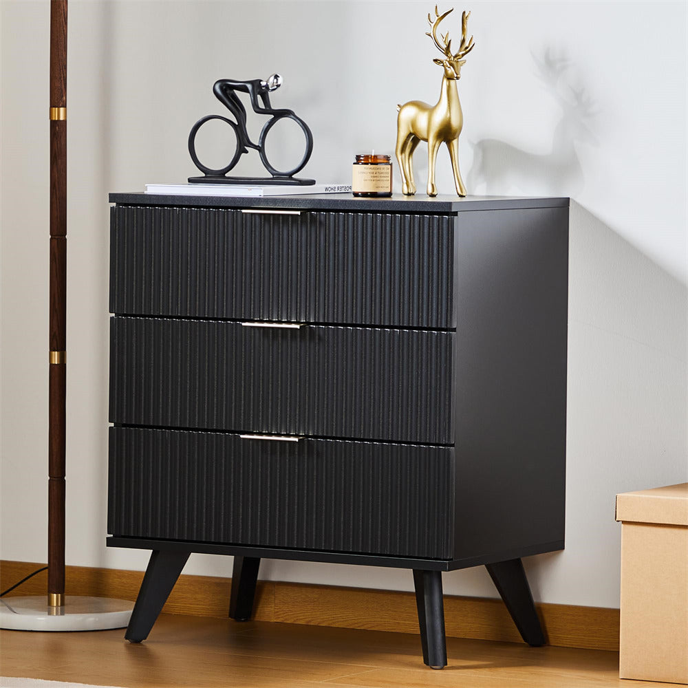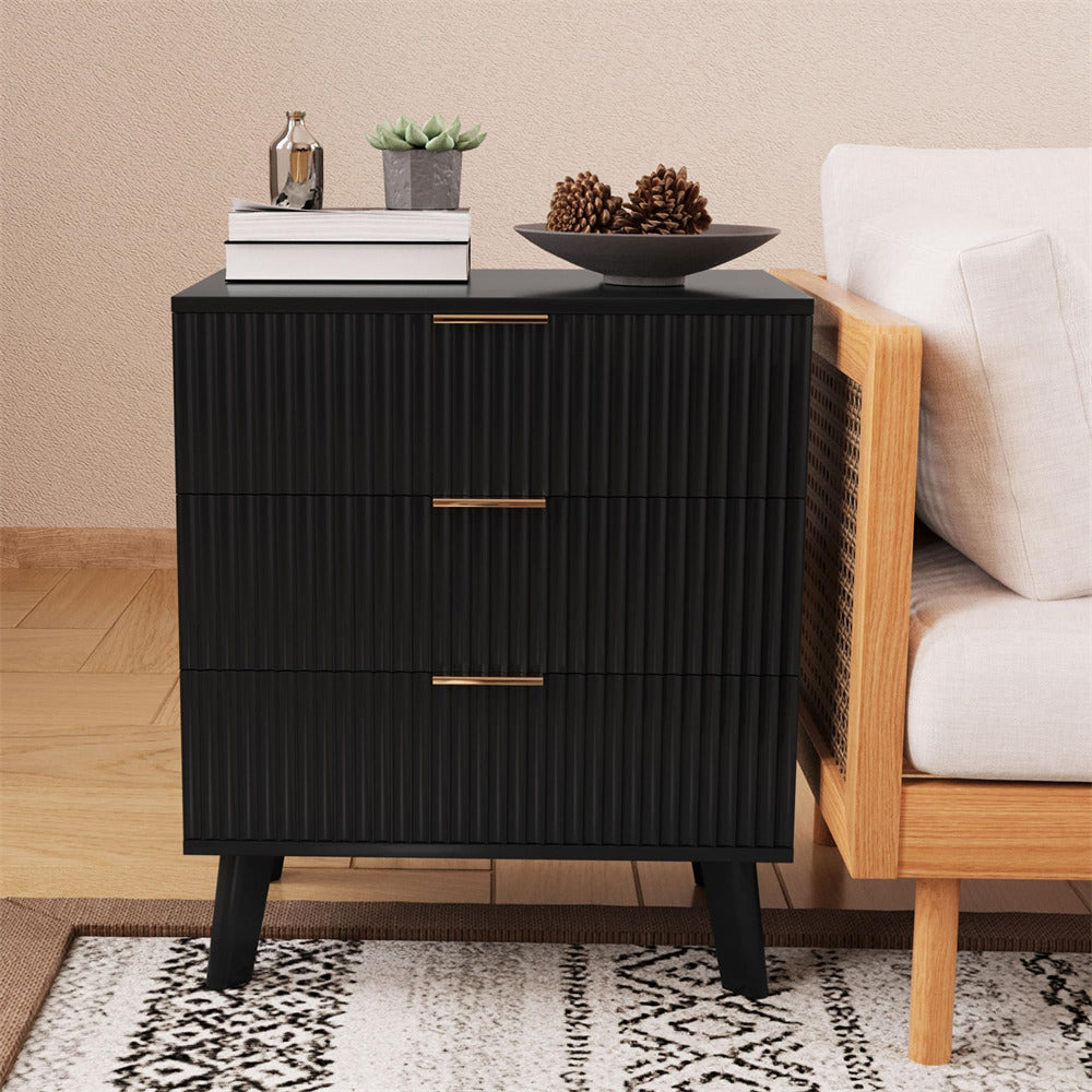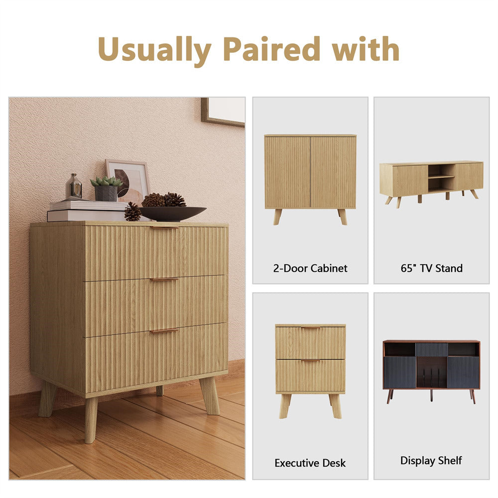 Wood 3 Drawer Dresser Fluted Nightstand