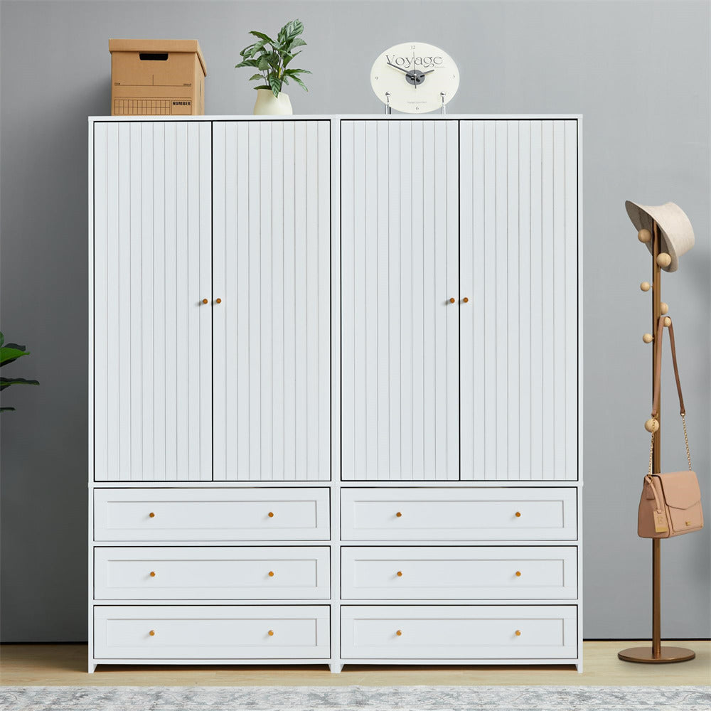 Freestanding 2-Door Wardrobe Closet Clothing Organizer with 3-Drawer and Hanging Rod