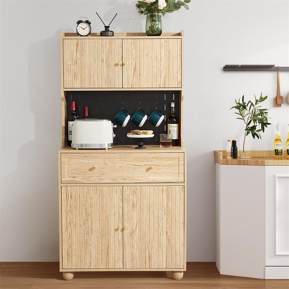 Durable and Stable: Invest in quality that lasts! Our kitchen hutch features cylindrical cabinet legs and a larger force area, ensuring it won't shake during use. Crafted from high-quality particleboard, its surface has been waterproofed to meet daily use needs. Experience peace of mind with our strong and stable kitchen pantry cabinet.