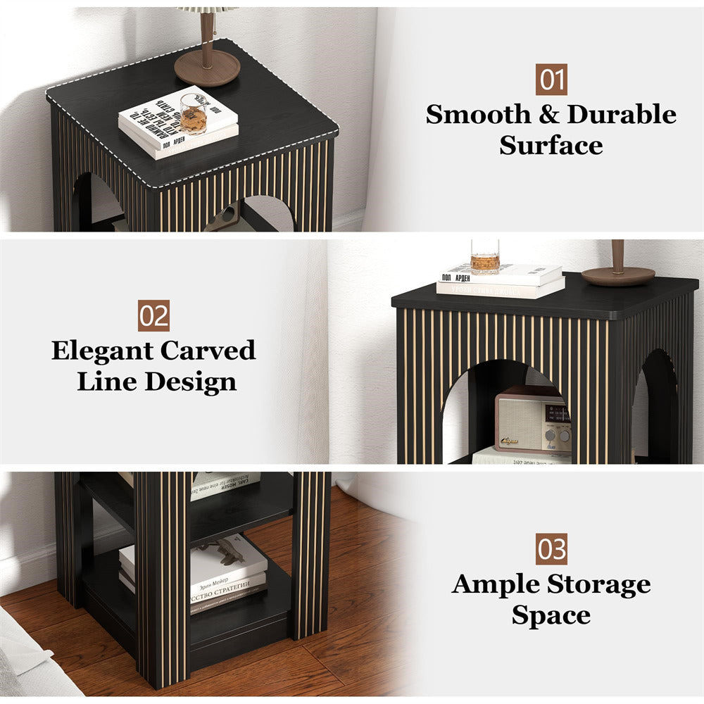 Mid-Century Modern 3-Tier Storage Side Table with Arched Carving Lines