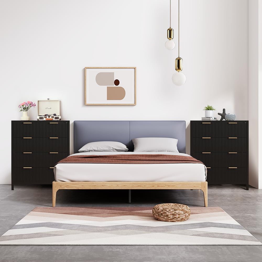 Mid Century Modern Dresser Farmhouse Wooden Storage Cabinet with 4 Drawers