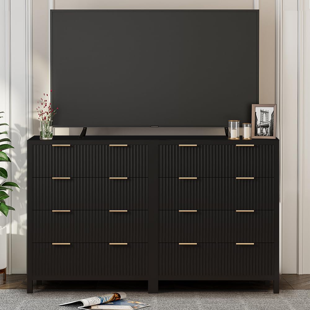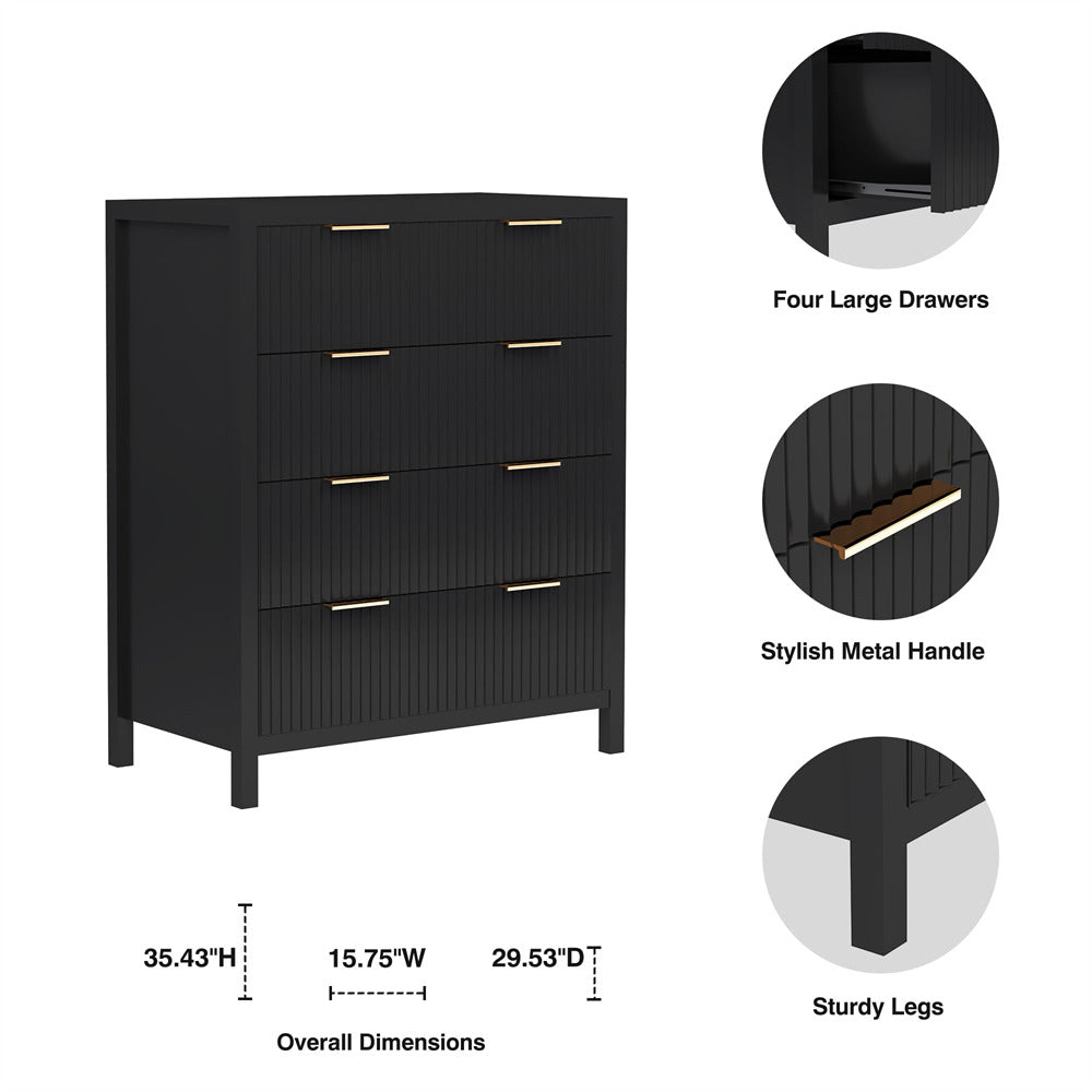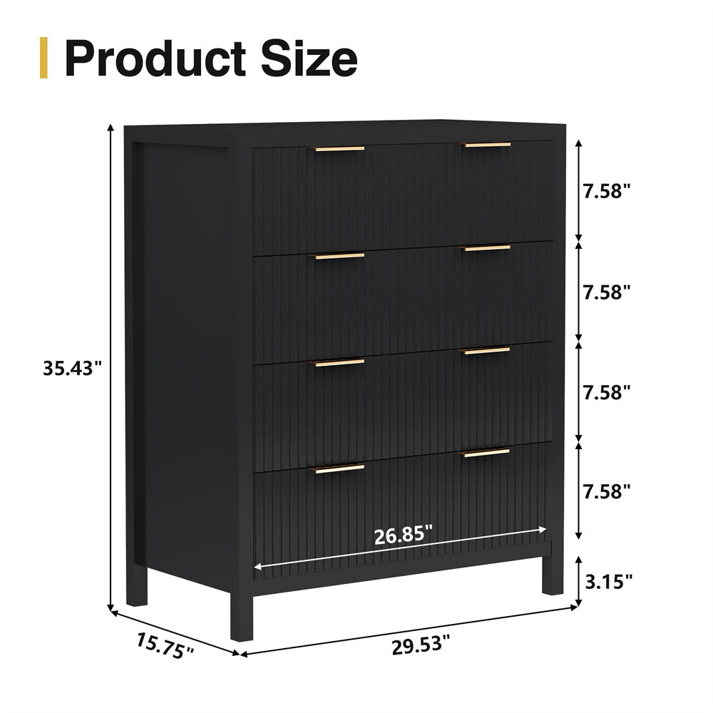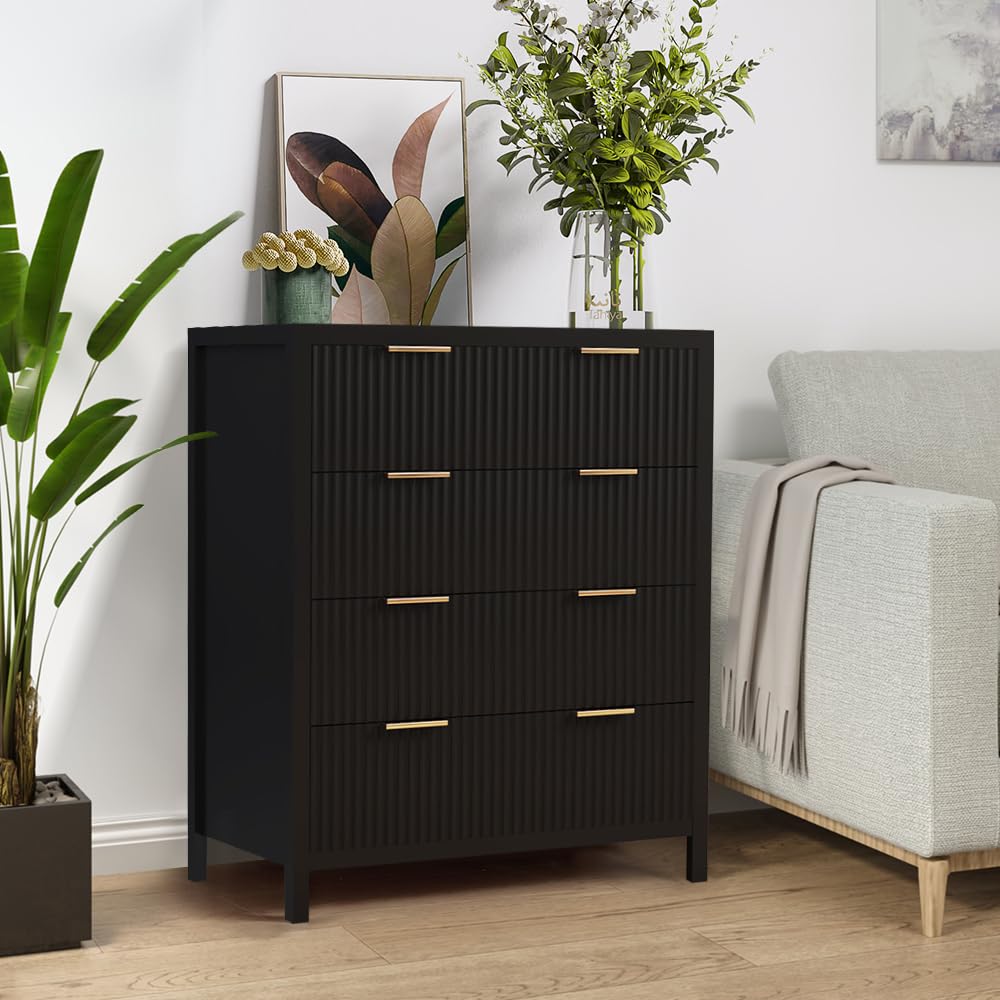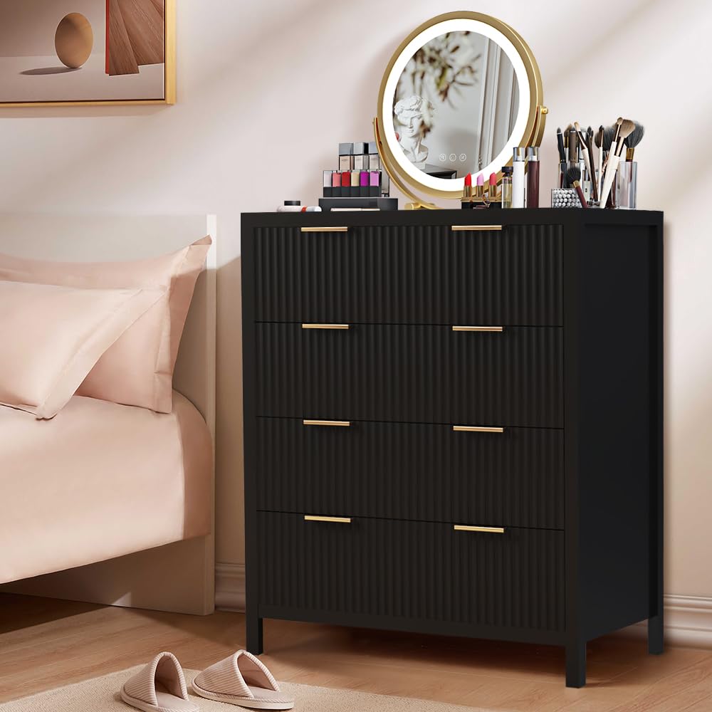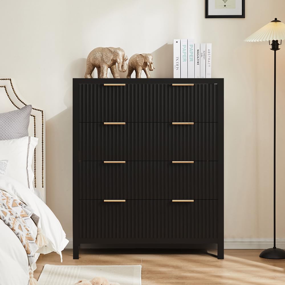 Multifunctional Storage Cabinet: The classic wave pattern drawer designs with smooth black surface is suitable for any decoration providing a modern and chic drawer cabinet for your exquisite home. This is a space-saving solution that can meet your storage needs at the head of the bed or living room, in closets, entryway and office. Besides, this drawer chest is an ideal for small spaces. It is suitable to be used as a makeup cabinet,closet dresser,accent cabinet or console table.
