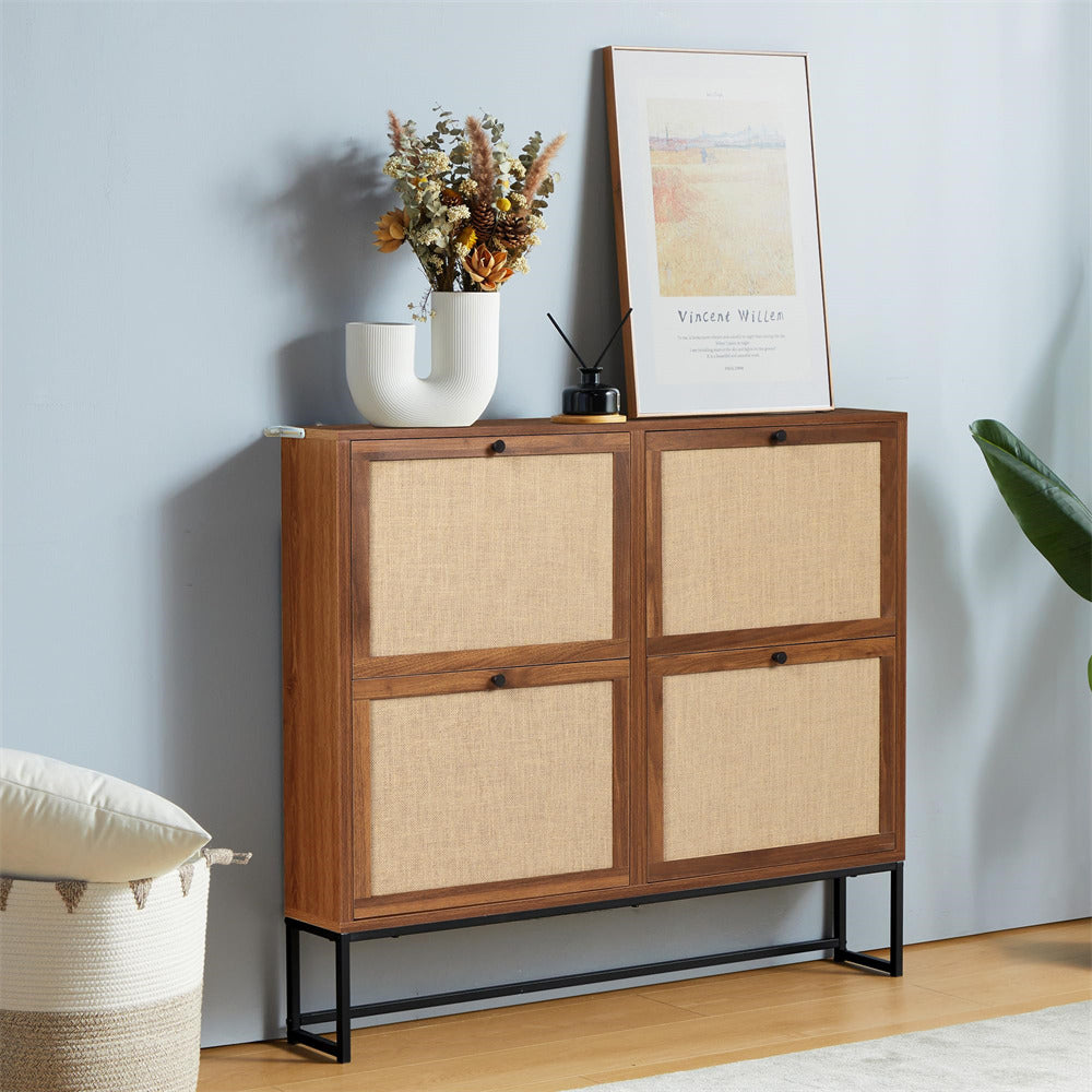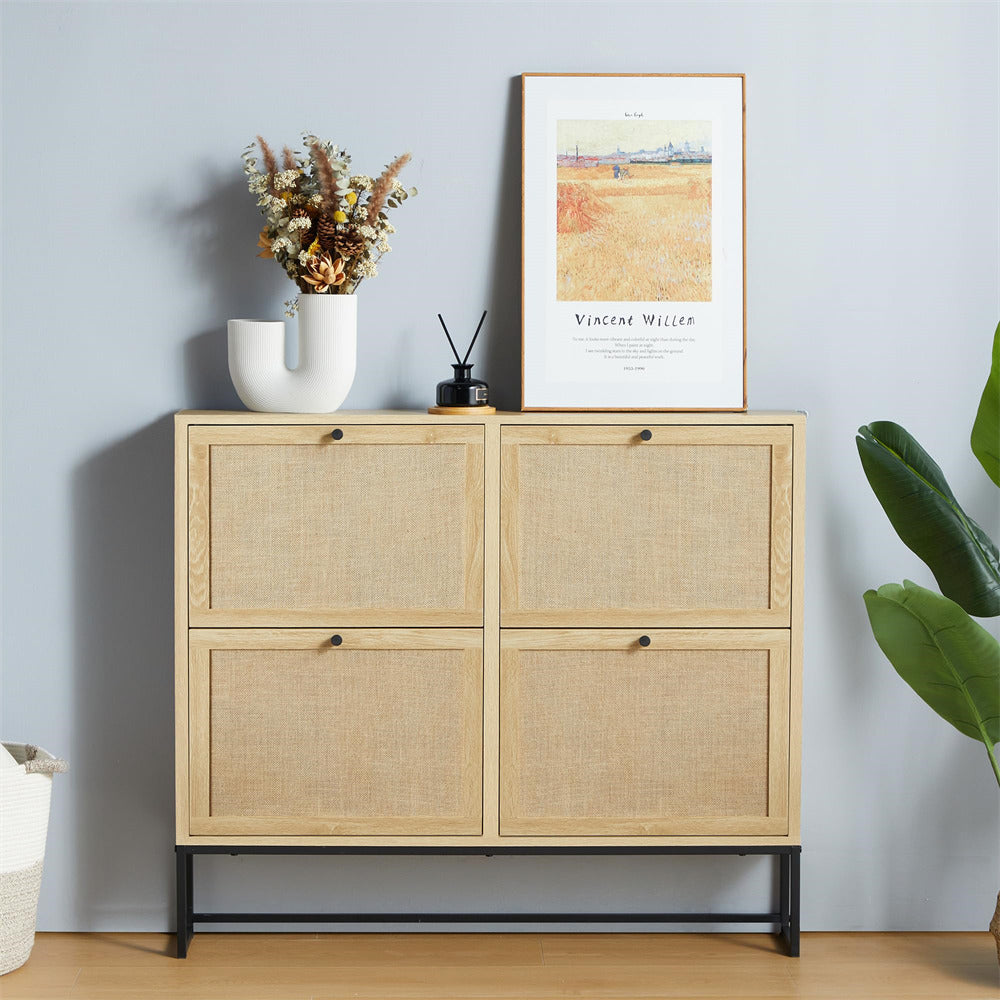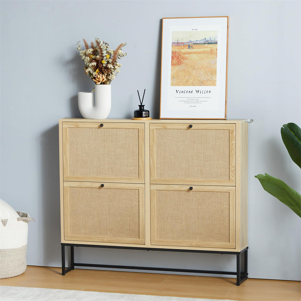 Product Advantage: The drawer panel of the thin shoe cabinet is made of natural Flax through special craftsmanship, which has strong breathability. The space saving 4 flip drawer design makes your entrance more tidy and offers ample storage space. The metal base ensures greater durability and is equipped with an anti tipping device, making it safer and more reliable to use.