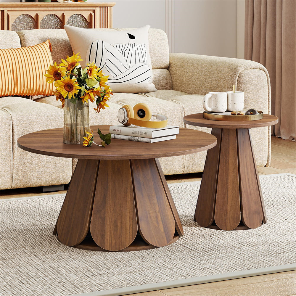 Modern Farmhouse Wood Round Coffee Table with Petal Pedestal Base