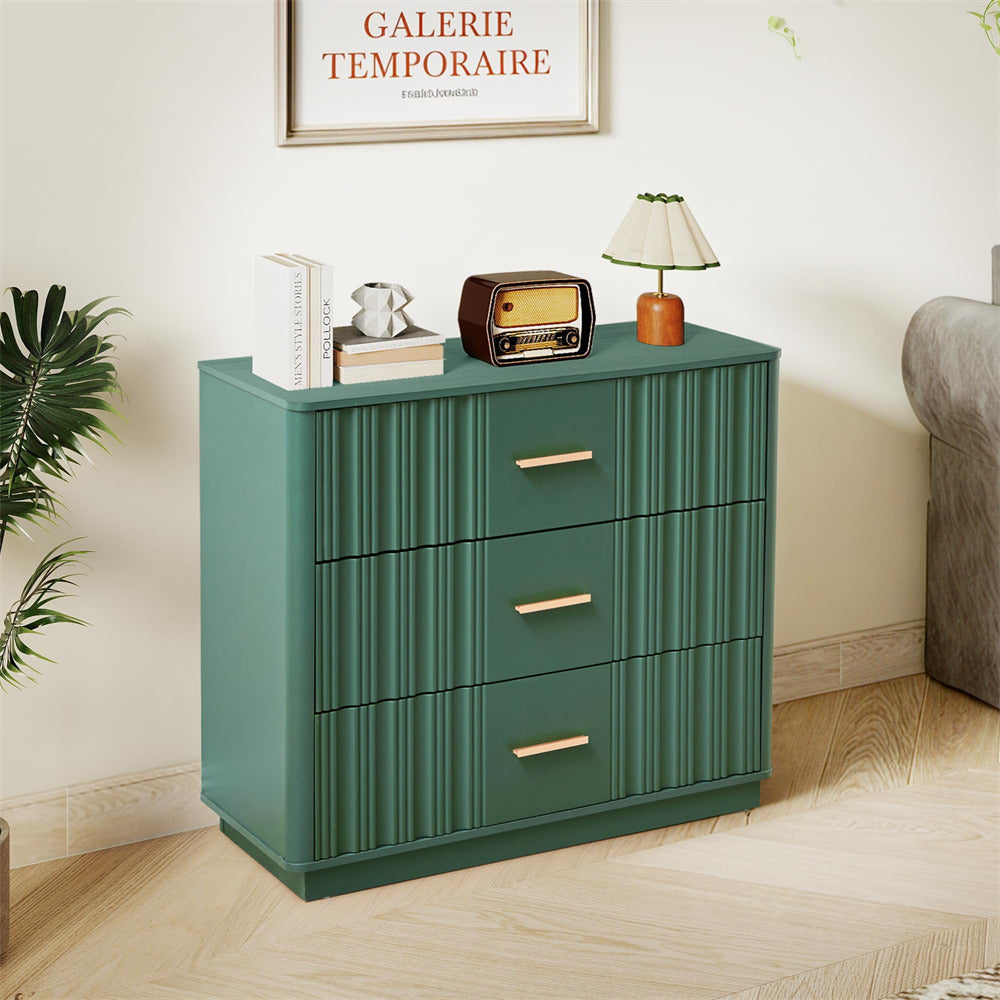 Modern Chic Design: The fluted waveform panel with sleek curved profile design is unique and elegant. This bedroom dresser is complete with metal handles, the smooth metal guide rail allows the drawer to be pulled out and closed easily and silently, it provides the drawers with durability.