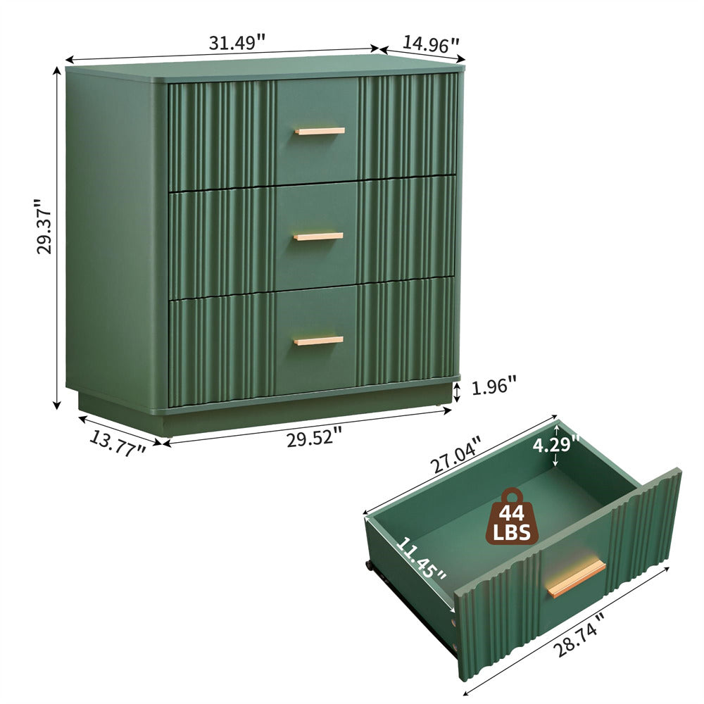 - 3 Drawer Dresser Size: 15.75"D x 31.5"W x 26.77"H