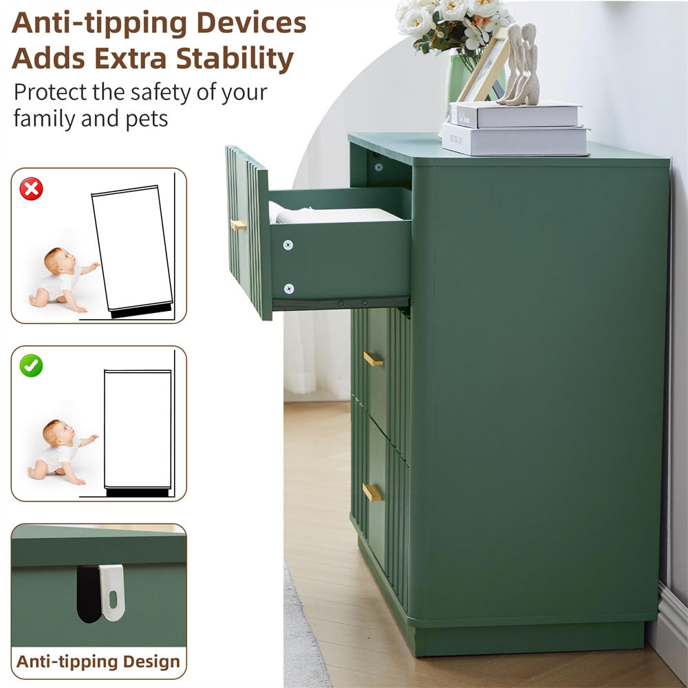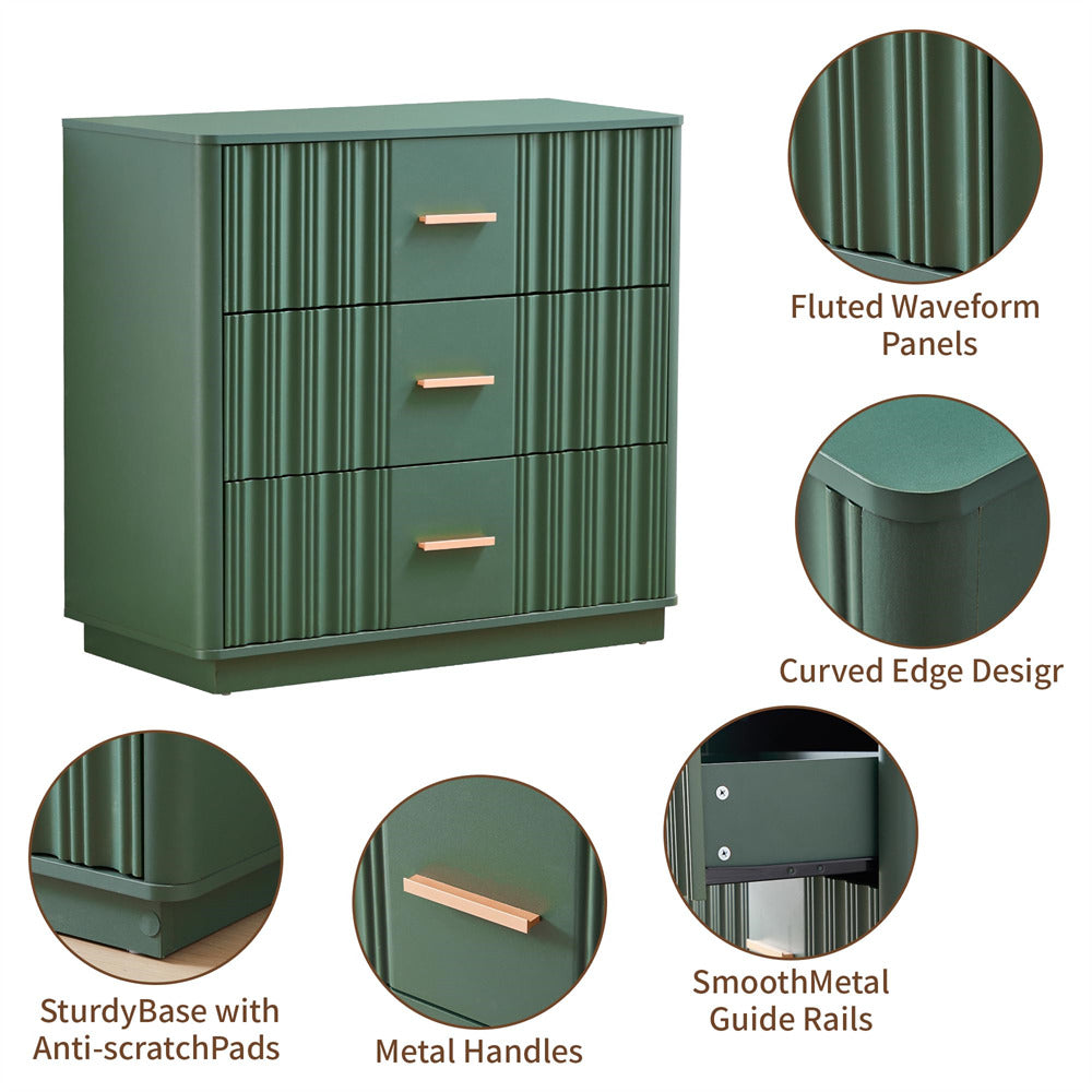 Modern Fluted Dresser Chest of Drawers with Metal Handle