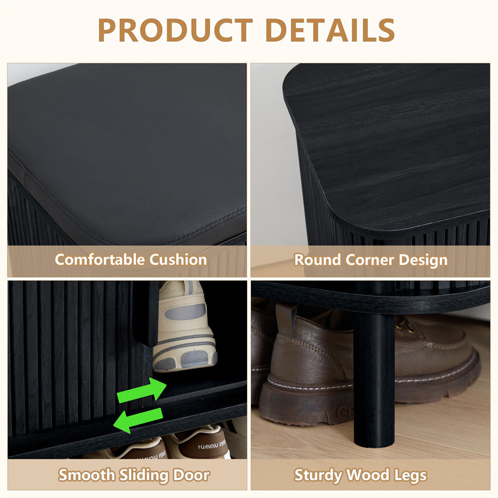 Sliding Door Design: The shoe rack bench is designed with space-saving sliding door that are easy to open and close for access, and also keep away dust and protect your privacy. The storage bench not only elevates the practical function of your space, the fluted expensive look can match various home decor styles.