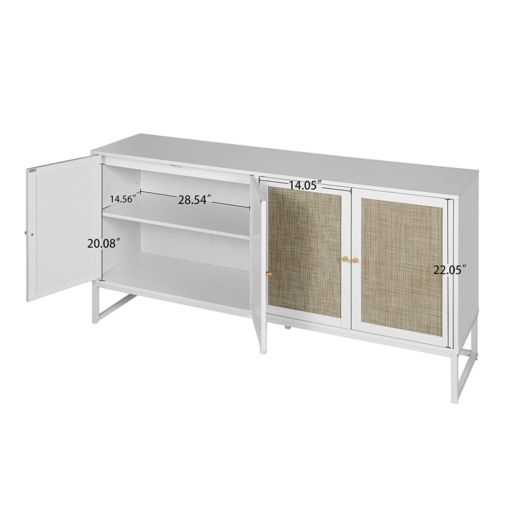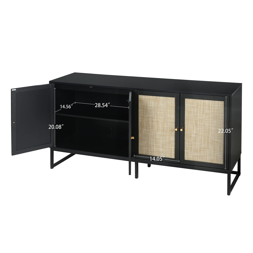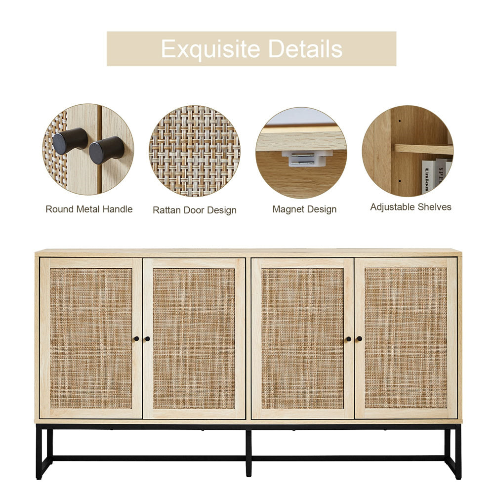 59"Modern Sideboard Storage Cabinet with 4 Rattan Doors