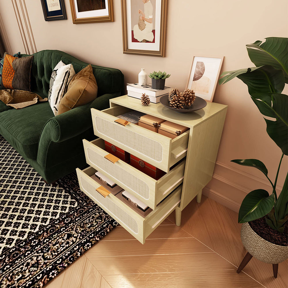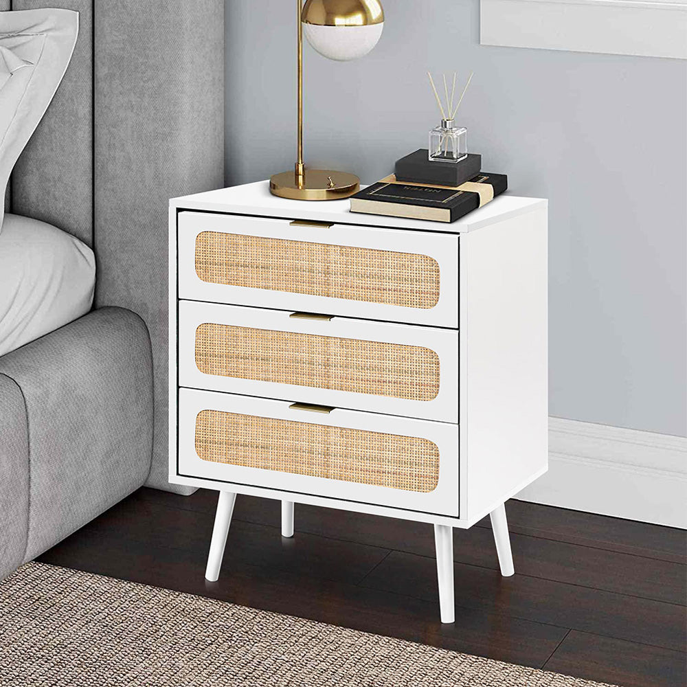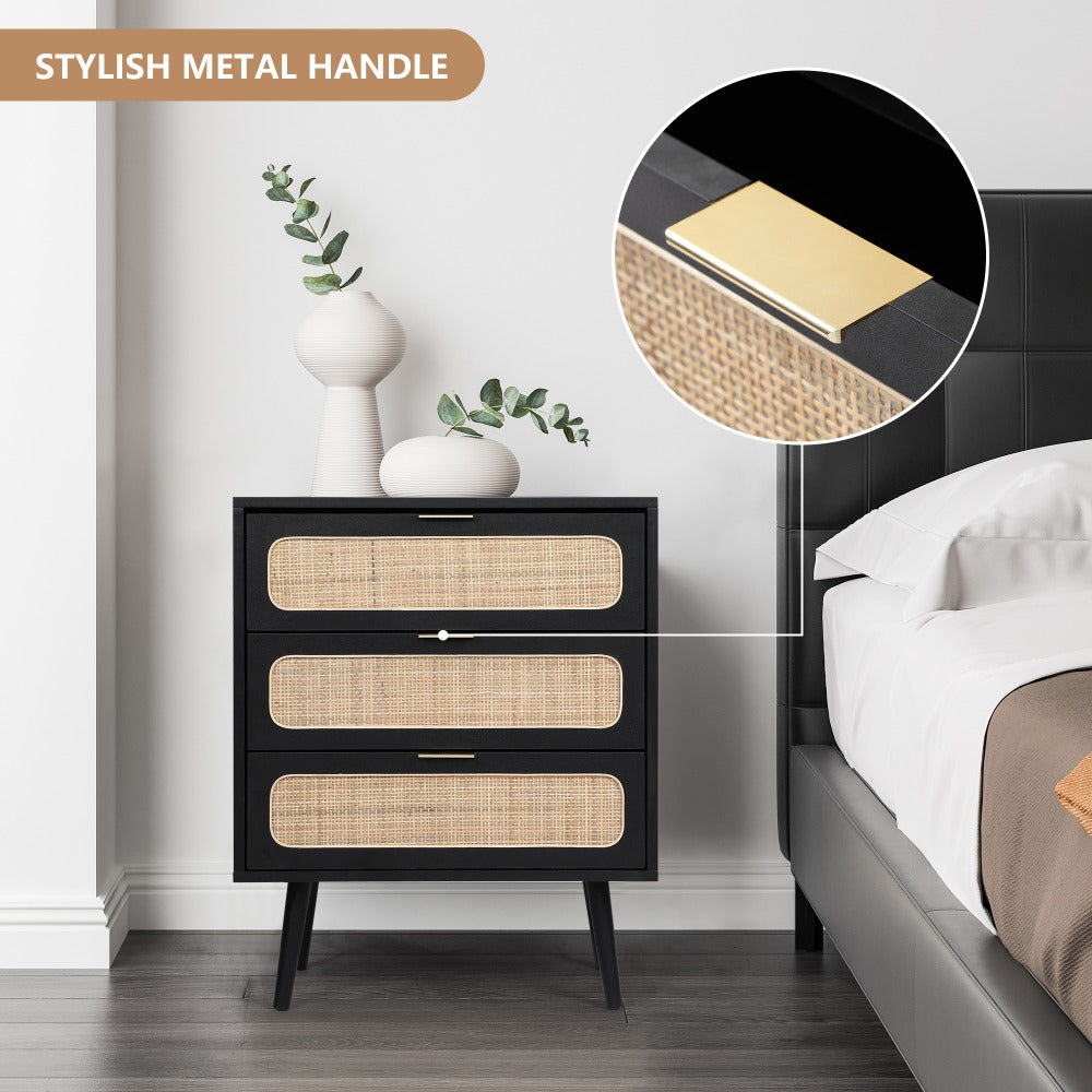 Rattan Nightstand Dresser Table with 3 Drawers