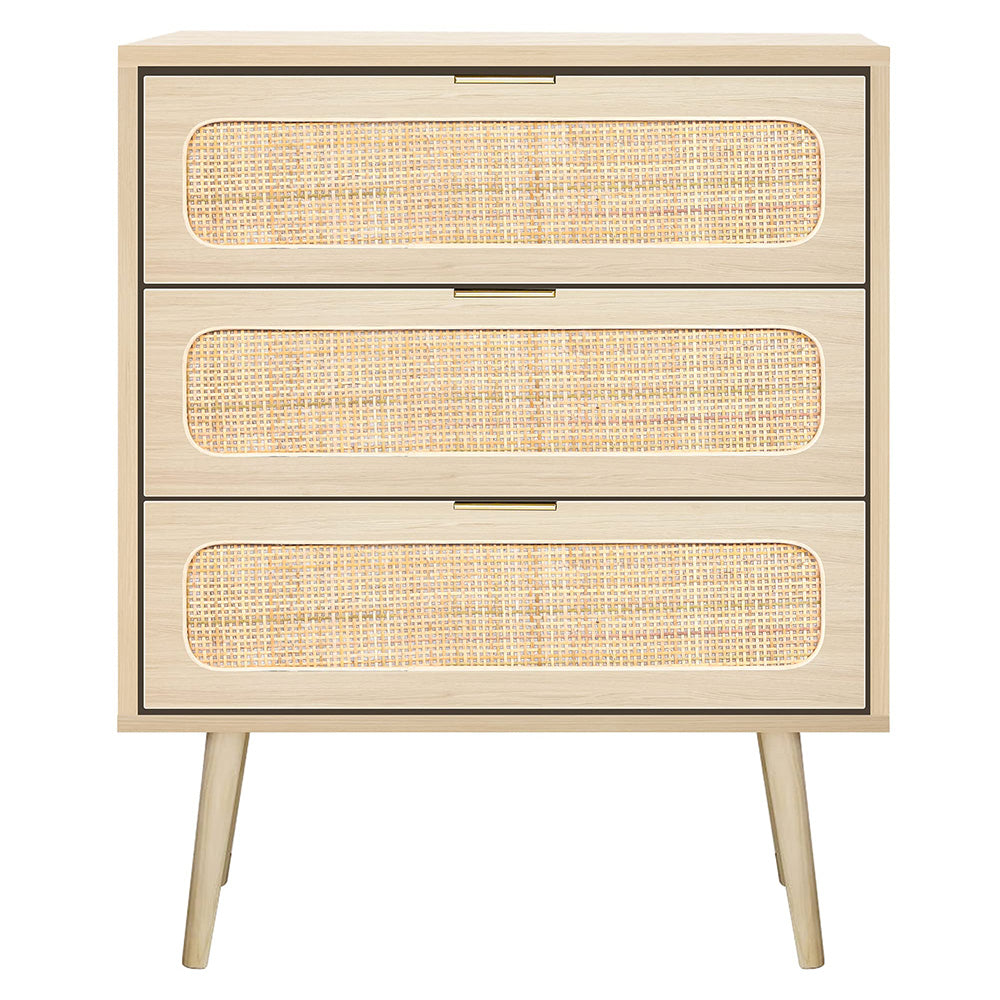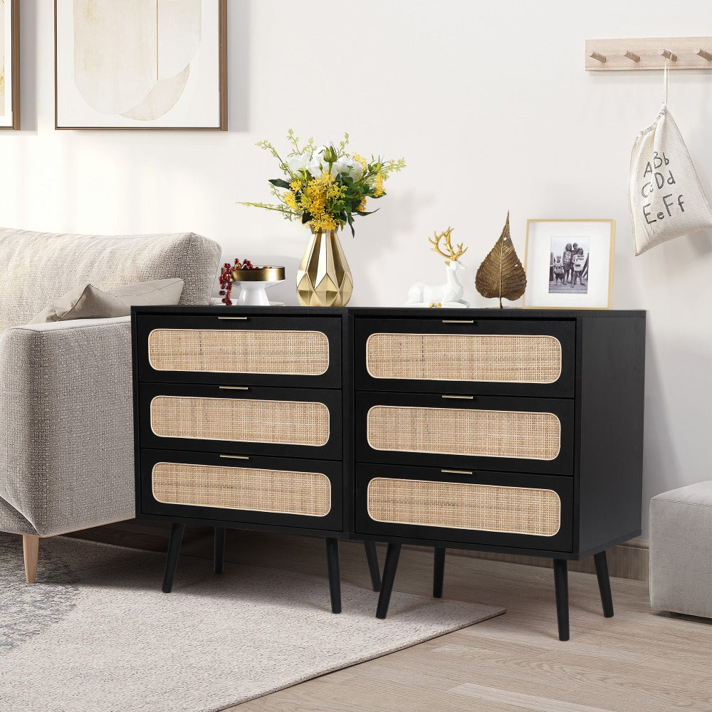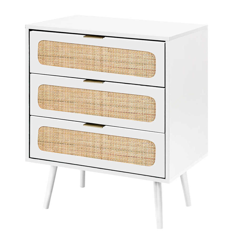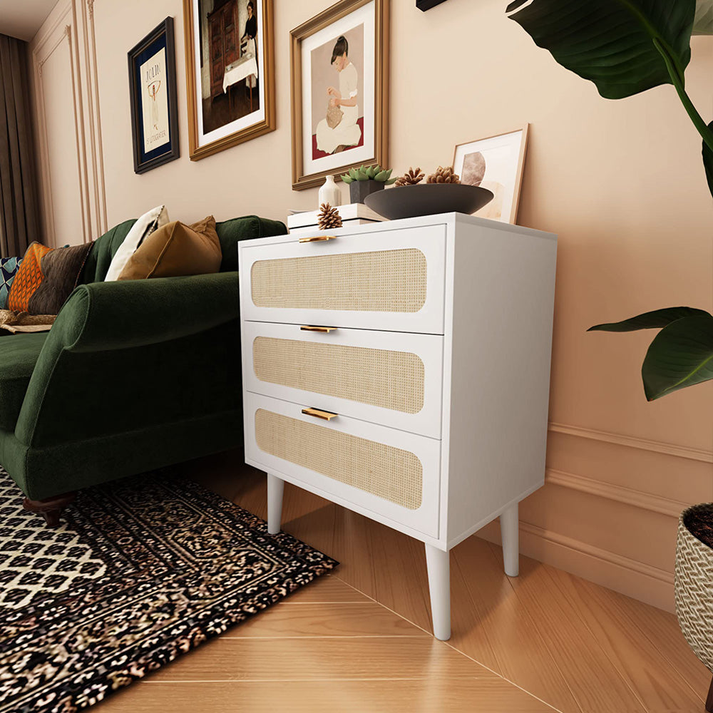Rattan Nightstand Dresser Table with 3 Drawers